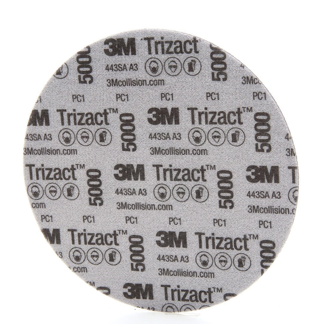El disco abrasivo de espuma 3M™ Trizact™ Hookit™ elimina los rasguños de arena fina en las superficies pintadas para reducir la cantidad de tiempo dedicado a la preparación de compuestos.