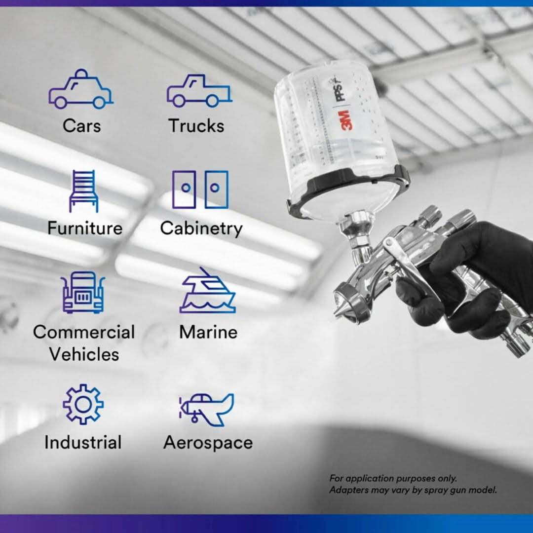 • El adaptador convierte prácticamente cualquier pistola aerosol de tapa en una que funcione con 3M ™ PPS ™ Series 2.0, nuestra próxima generación, el sistema de copa desechable de mayor rendimiento.