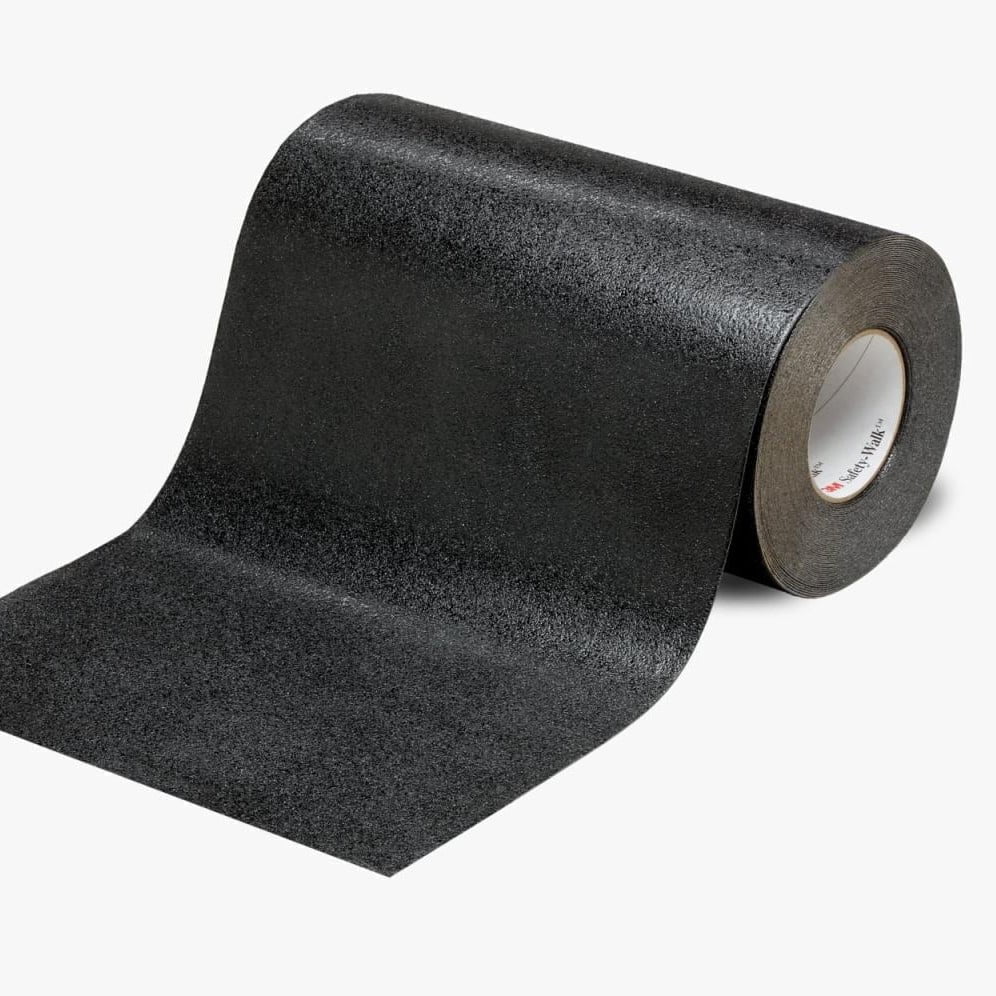 El material antideslizante de alta fricción tiene un respaldo de aluminio especial que se adapta a las esquinas y se adhiere a las superficies irregulares.