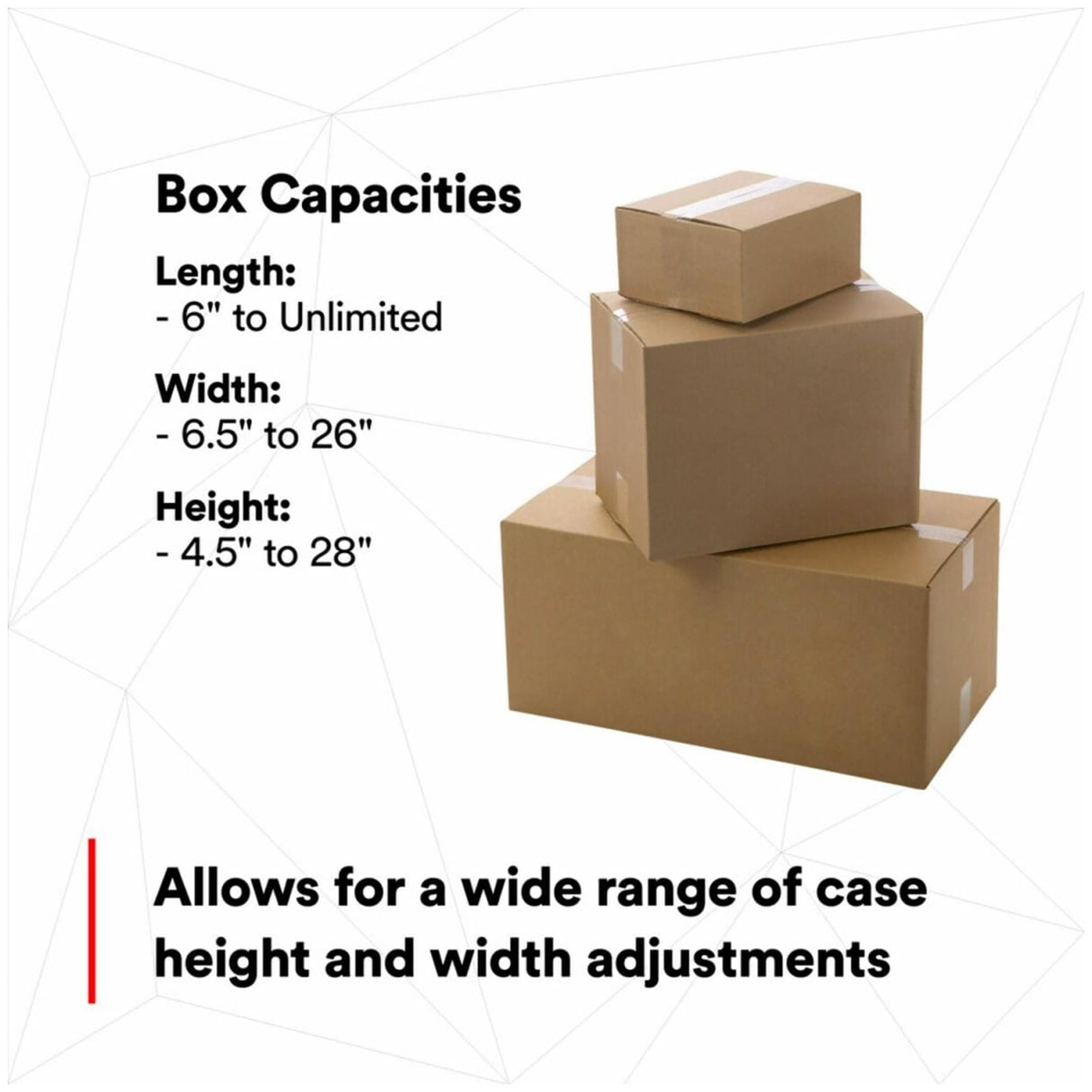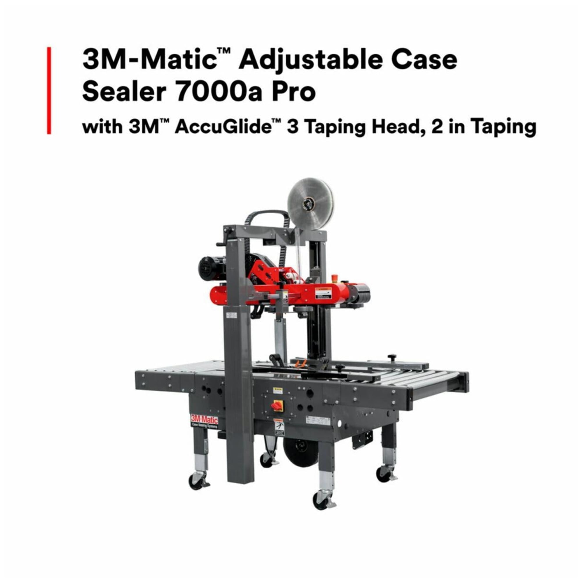Selladora de cajas ajustable 3M-Matic™ 7000A/7000A3 Pro con cabezal de encintado 3M™ AccuGlide™ 3 de 2″ o 3″ sella cajas de forma rápida y confiable, turno tras turno, año tras año. Con capacidad de tamaño de caja ampliada y cabezales de encintado intercambiables, este sellador resistente cambia con los cambios comerciales, impulsando la productividad, reduciendo costos y manteniendo la rentabilidad de las empresas.