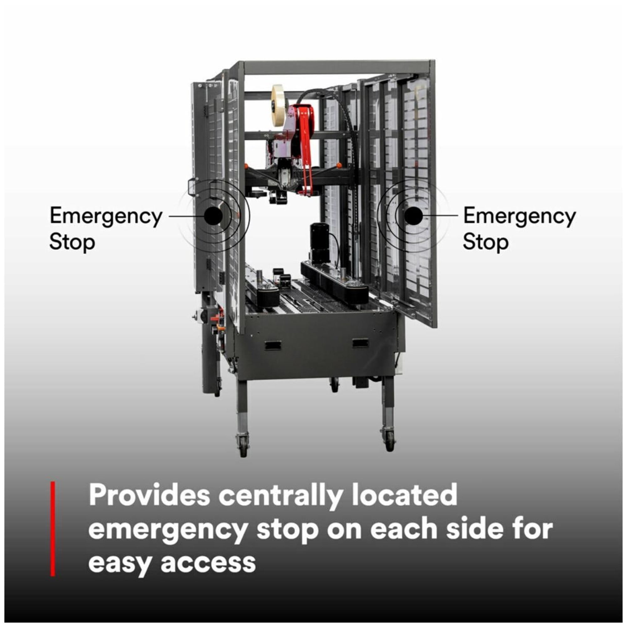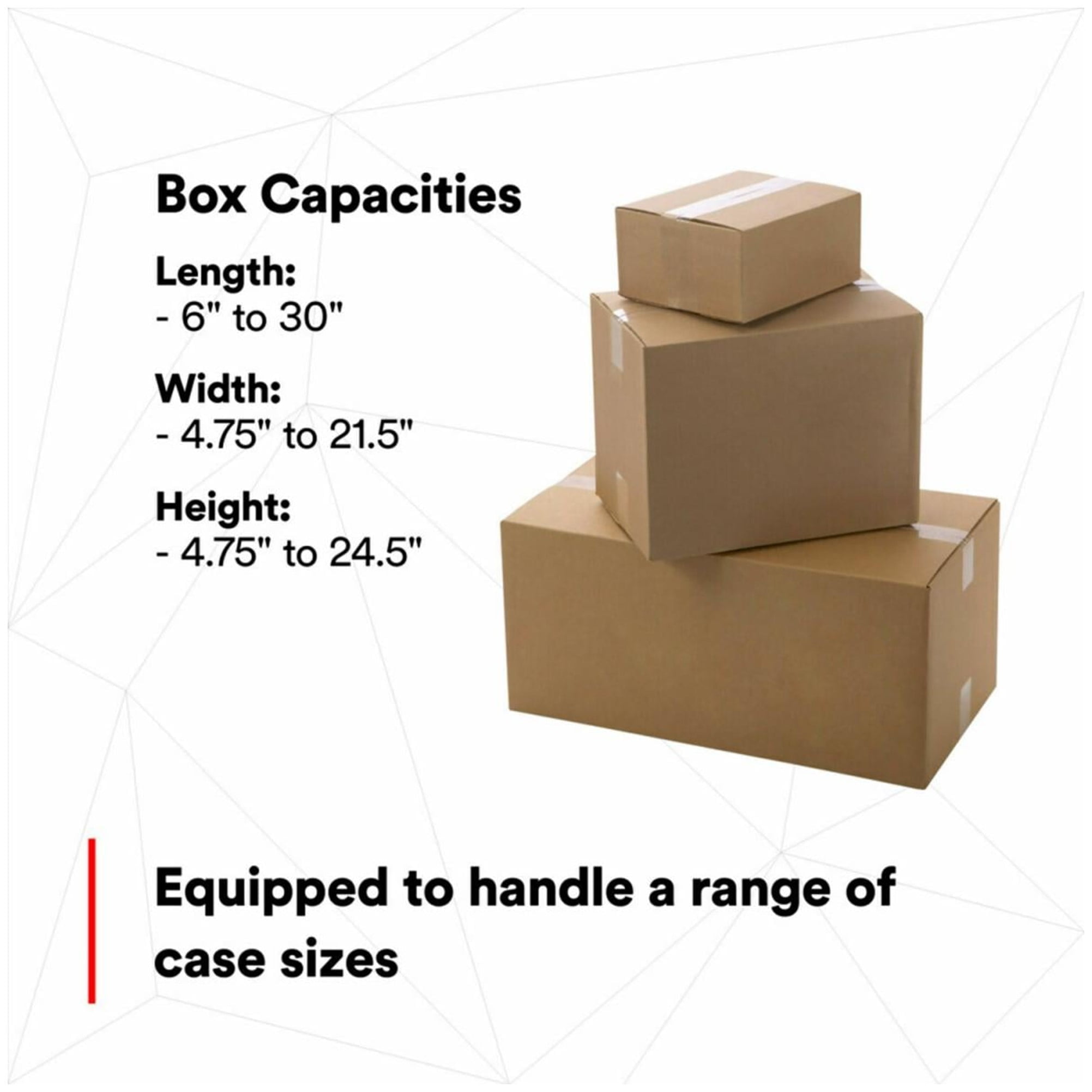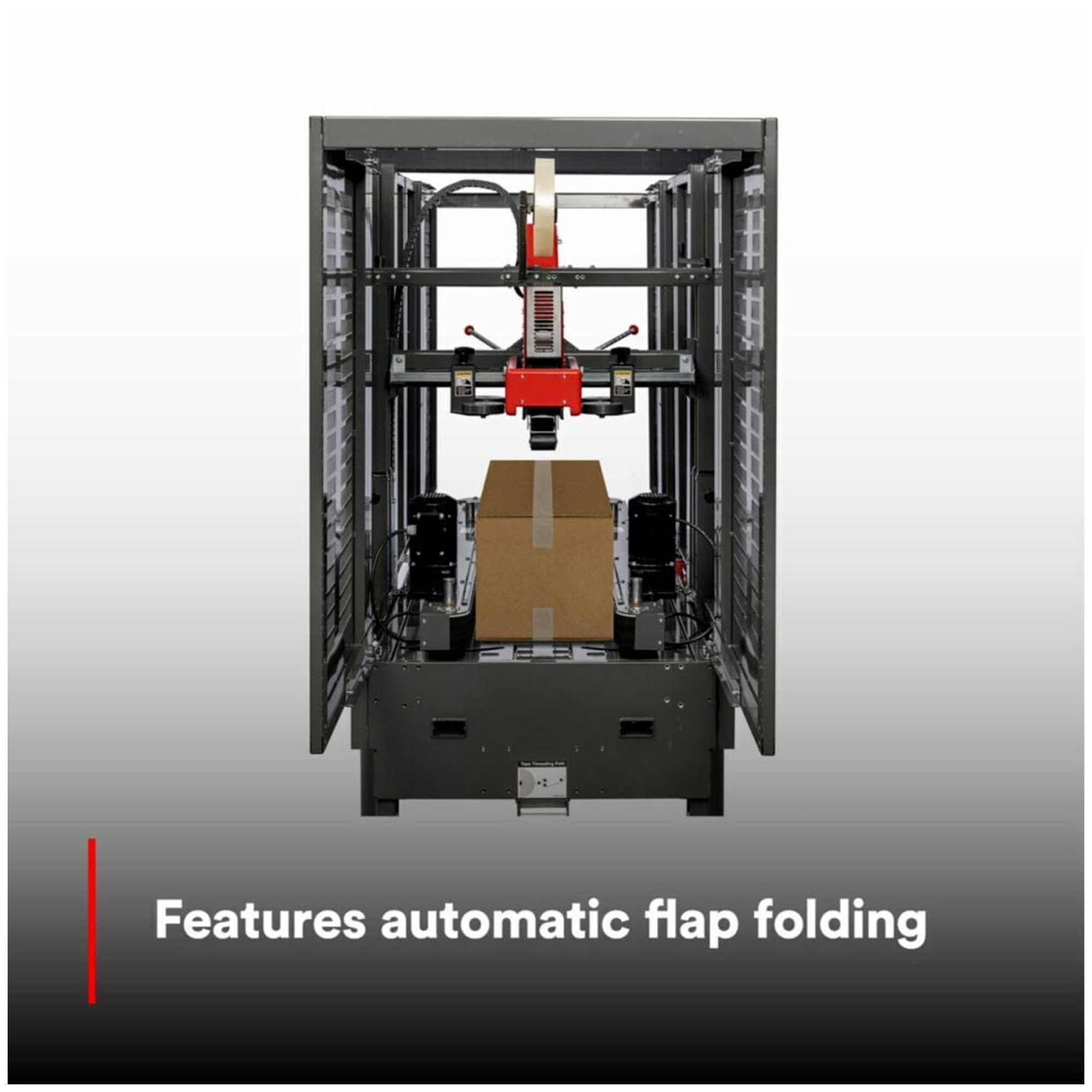La selladora de cajas 3M-Matic™ 8000AF/8000AF3 con cabezal de encintado 3M™ AccuGlide™ 3 es una selladora de cajas ajustable manualmente que pliega las solapas superiores para sellar sin necesidad de un operador. El motor de doble engranaje acciona las correas de transmisión con agarre de tracción eléctrica en cada lado para centrar y estabilizar cajas de hasta 85 libras. (38 kilos). Este sellador de cajas utiliza cintas selladoras de cajas Scotch® de 2” o 3″ (seleccionable en la parte superior del producto) y sella hasta 40 cajas por minuto.