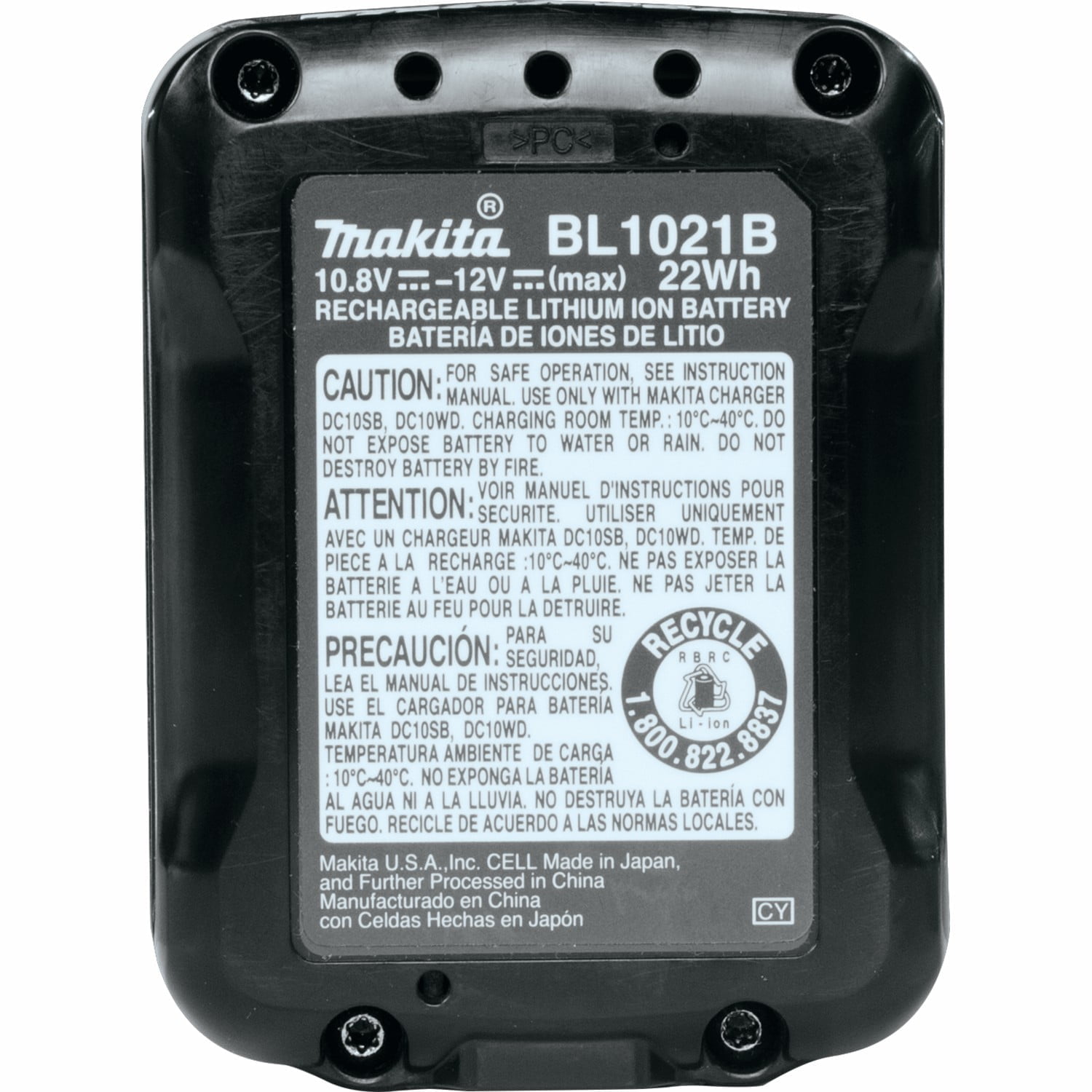 • COMPATIBILIDAD: Utilizar solamente con cargadores Makita DC10WD y DC10SB