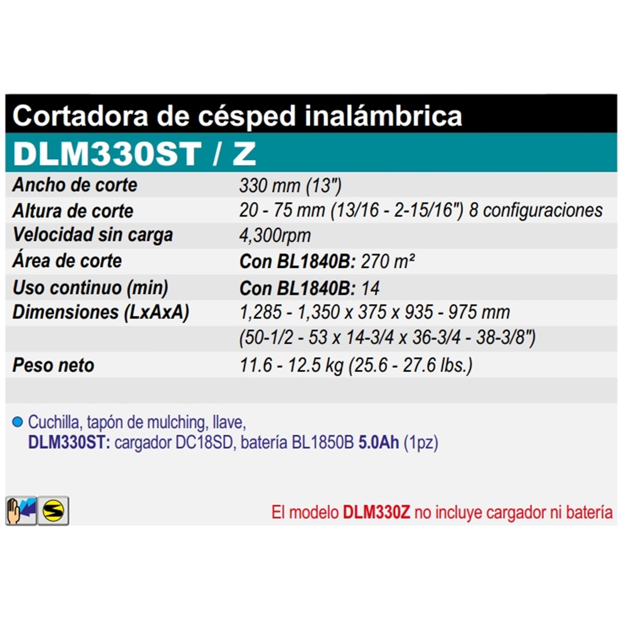 • DLM330ST: cargador DC18SD, batería BL1850B 5.0Ah (1pz).