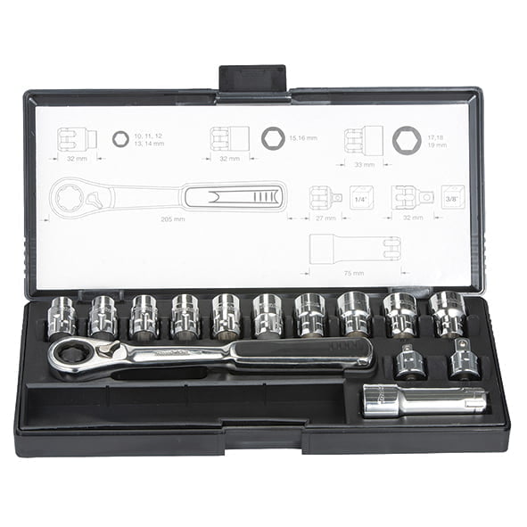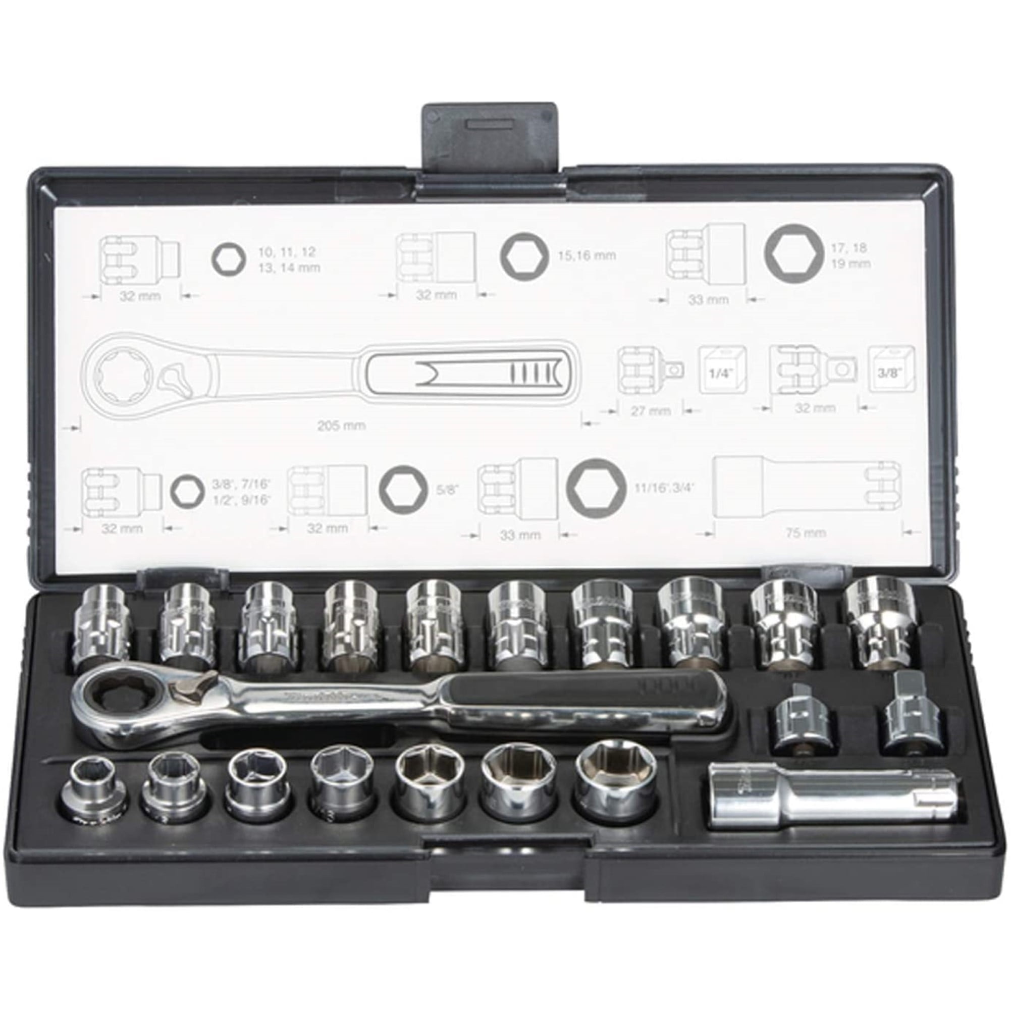 JUEGO DE DADOS Y MATRACA MILIMÉTRICO (34 PCS) 1/4″ B-65567