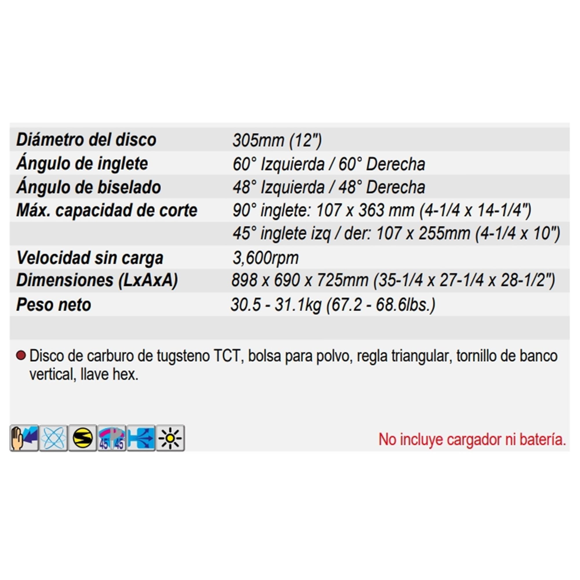 | Medida | 305mm (12”) |