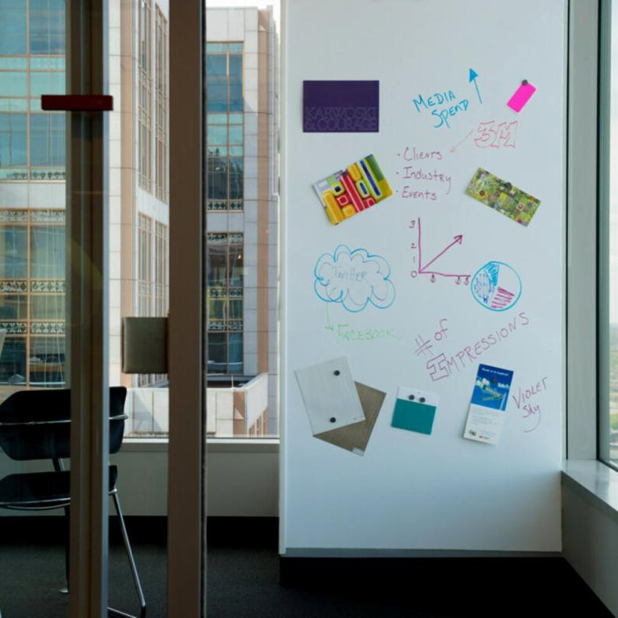 Es un vinilo blanco con acabado mate para proyección y pizarrón, está fabricado con materiales especiales que permiten que una imagen sea proyectada casi sin ningún reflejo, así como también el poder escribir (con los marcadores adecuados) sobre la superficies sin problemas de borrado.