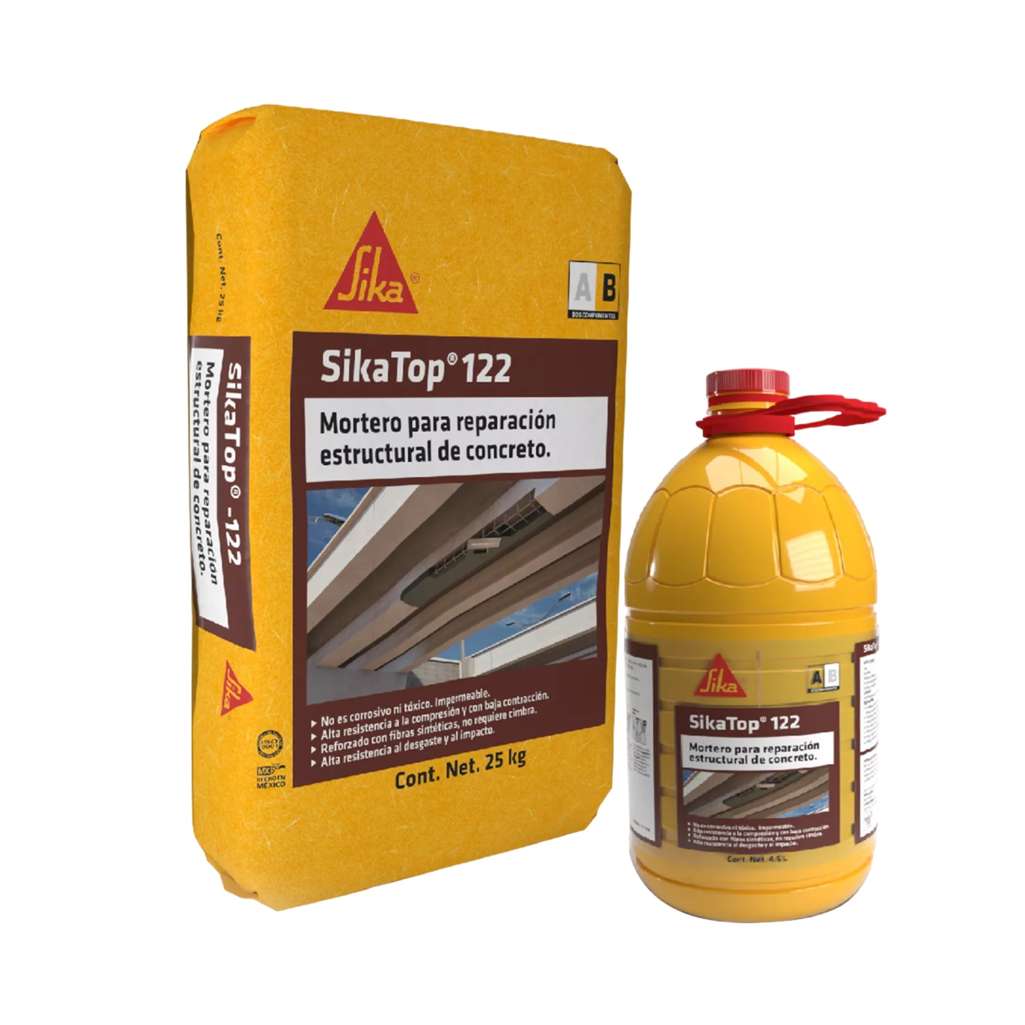 SikaTop®-122 es un mortero de dos componentes de alta adherencia a base cemento modificada y polímeros, adicionado con fibras sintéticas de alto desempeño con gran adherencia a superficies horizontales, verticales y sobrecabeza. Además fue especialmente diseñado para la reparación en elementos estructurales de concreto.