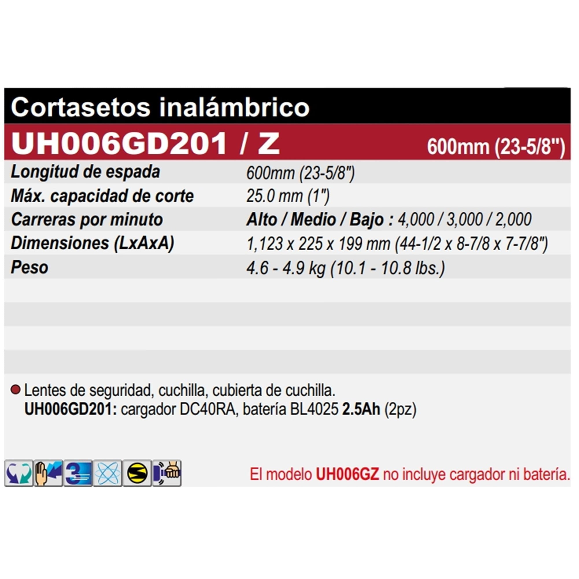 | Versión | UH006GD201, UH006GZ – Sin batería ni cargador |